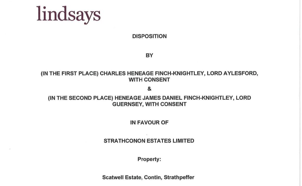 The deed conveys 3525 hectares (ha) of land in Ross & Cromarty comprising the majority of Scatwell Estate at the foot of Strathconon. The sale excluded Scatwell House, low ground, and all estate buildings and consists solely of high hill ground and some woodland (see map at top of this blog). Two features stand out about this sale (there is an interesting third one which I will discuss in my next blog).