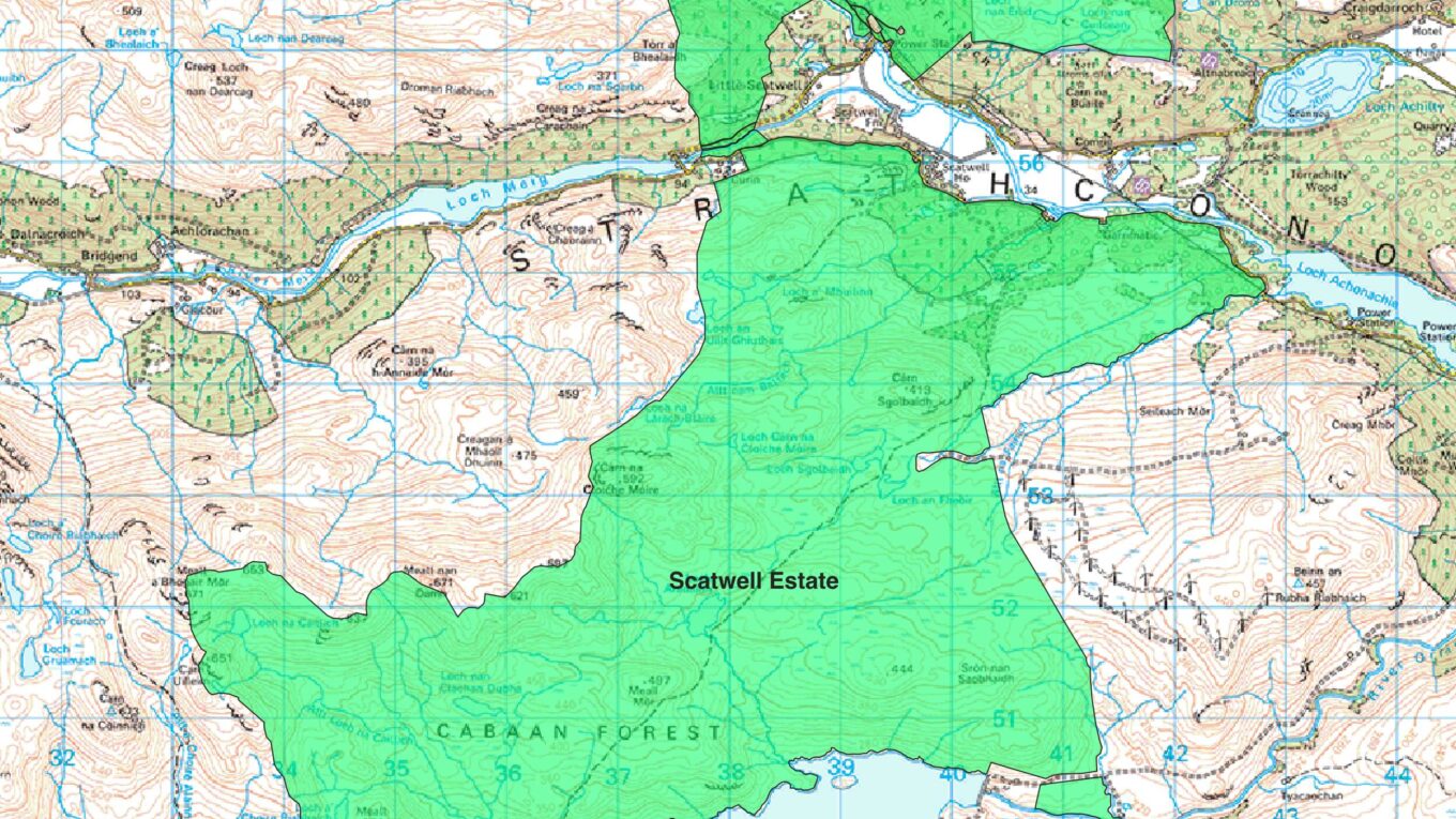 The deed conveys 3525 hectares (ha) of land in Ross & Cromarty comprising the majority of Scatwell Estate at the foot of Strathconon. The sale excluded Scatwell House, low ground, and all estate buildings and consists solely of high hill ground and some woodland (see map at top of this blog). Two features stand out about this sale (there is an interesting third one which I will discuss in my next blog).