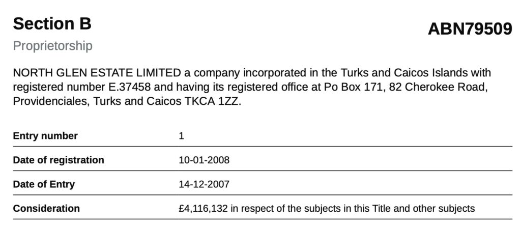 Having dealt with the naming issue, we get to the question of who is in fact behind North Glen Estates Limited? The company is entered here (RP009787). The associates (those who exercise significant control over the owner) are named as;
