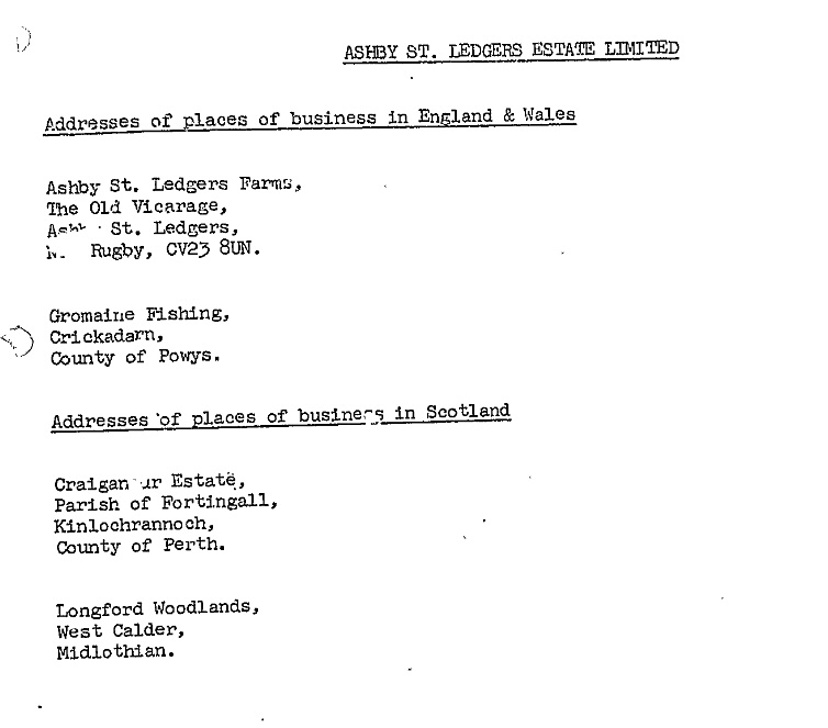 He died in 1967 and in 1973 the Executors transferred ownership to Ivor Fox-Strangways Guest, the 3rd Viscount Wimborne. In 1977 ownership was transferred to Ashby St Ledgers Estate Ltd., a company incorporated in Jersey which later changed its name to Astel Ltd. (which appears to be a contraction of the previous name Ashby St Leger’s Estates Ltd.). Ashby St Ledgers has been the seat of the Guest family since 1903 and was then the address of its UK place of business (it is now Savills in Perth).